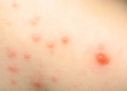 Το εξάνθημα της ανεμευλογιάς Οι δερματικές βλάβες, χαρακτηριστικό της λοίμωξης, σε μερικά άτομα μπορεί να είναι ελάχιστες, ενώ σε άλλα μέχρι και 2.000 (τα μικρότερα παιδιά συνήθως έχουν λιγότερες φυσαλίδες από τα μεγαλύτερα άτομα), περιλαμβάνουν κηλίδες, βλατίδες, φυσαλίδες και εφελκίδες σε διάφορα στάδια εξέλιξης. Οι βλάβες αυτές, με διάμετρο 5-10 mm, που μετατρέπονται από κηλιδοβλατιδώδεις σε φυσαλιδώδεις σε διάστημα ωρών έως ημερών, εμφανίζονται αρχικά στο κεφάλι (τριχωτό) και στην συνέχεια εξαπλώνονται στον κορμό και το υπόλοιπο σώμα, ακόμα και στον βλεννογόνο του φάρυγγα ή/και του κόλπου.
